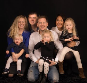 Kindjes die nog niet zelf kunnen zitten worden op de arm van papa of mama gefotografeerd.